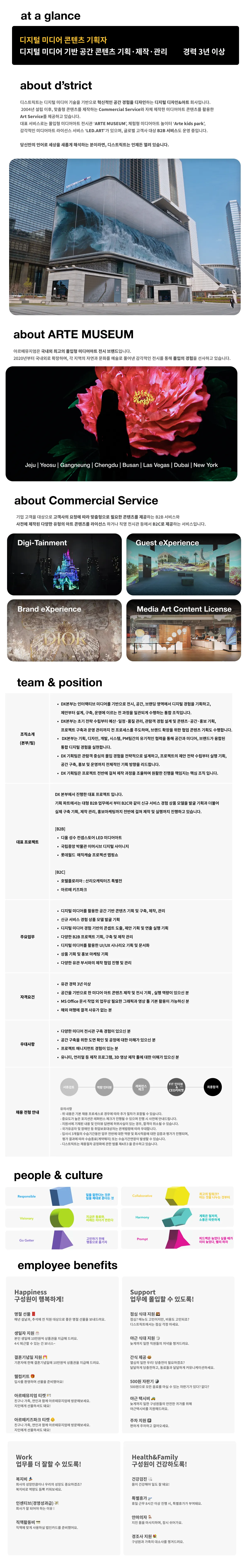 디지털이 숨쉬는 혁신적인 공간 경험을 만들어 가는 디스트릭트의 여정에 함께하실 분들을 모시고 있어요. 지원방법 아래 지원하기 버튼을 클릭 후 관련 서류를 업로드 해주세요! - 첨부서류: 국문 이력서, 자기소개서, 경력기술서, 포트폴리오 등 지원 서류 지원하기 지원방법2 지원하기 양식을 통한 지원이 어려울 경우, 채용 메일(onboarding@dstrict.com)로 지원 서류 첨부 후 접수 - 메일제목: [입사지원/포지션명] 성함 - 첨부서류: 국문 이력서, 자기소개서, 경력기술서, 포트폴리오 등 지원 서류