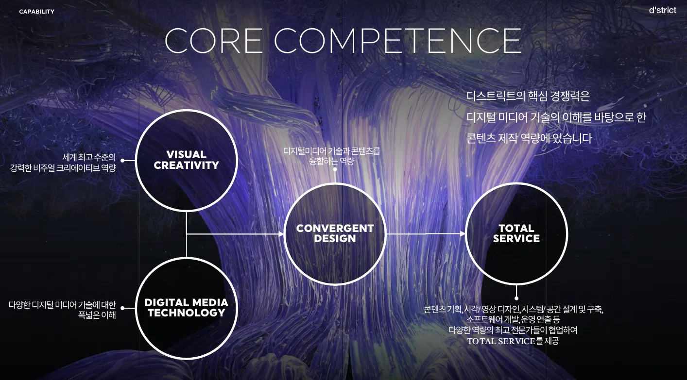 디스트릭트의 핵심 경쟁력은 디지털 미디어 기술의 이해를 바탕으로 한 콘텐츠 제작 역량에 있습니다.
